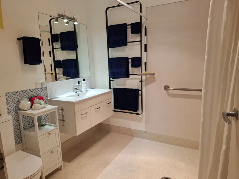 Bi-fold doors open which leads into the lounge. Note the lounge has a spare bed (King Single) for caregiver/family member.