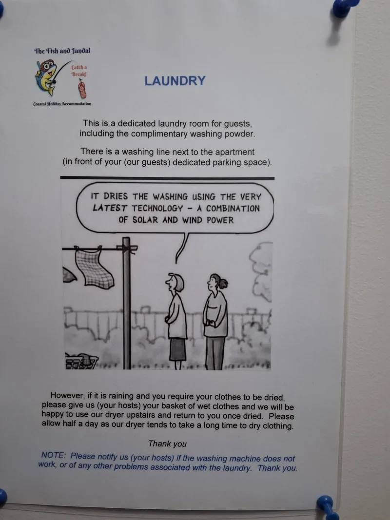 - Washing Machine & Clothes Line (Please just ask us (hosts) if you require your washing to be dried in a dryer. We will happily do so in our dryer upstairs).